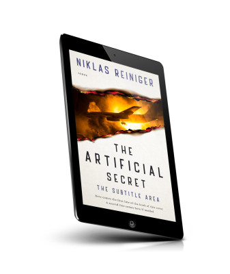 “A book cover featuring a torn section revealing a fiery background with a plane. The title "The Artificial Secret" is prominently displayed.”