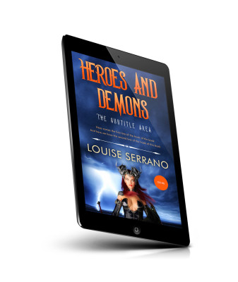 “A fantasy book cover featuring a warrior woman in armor, lightning in the background, and a dark, stormy sky.”