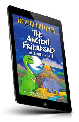 Tags: dinosaur, friendship, volcano, night sky, stars, moon, green dinosaur, blue triceratops, cartoon, landscape, mountains, trees, smiling, clouds, fun, colorful, playful, adventure, children, illustration.