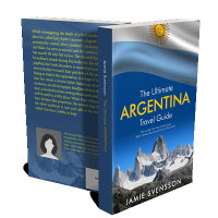 “A travel guide cover with the title "The Ultimate Argentina Travel Guide" featuring a mountainous landscape under a flag.”