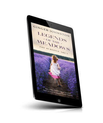 “A young girl in a white dress runs through a vibrant purple meadow under a pastel sky.”