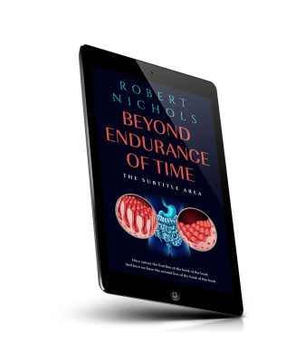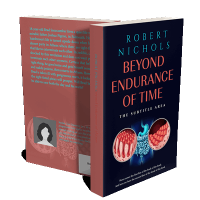 “Book cover with the title "Beyond Endurance of Time" by Robert Nichols, featuring digestive organs illustration in the center.”