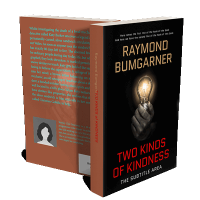 “A hand holding a glowing light bulb against a black background, featuring the title "Two Kinds of Kindness" in bold red letters.”