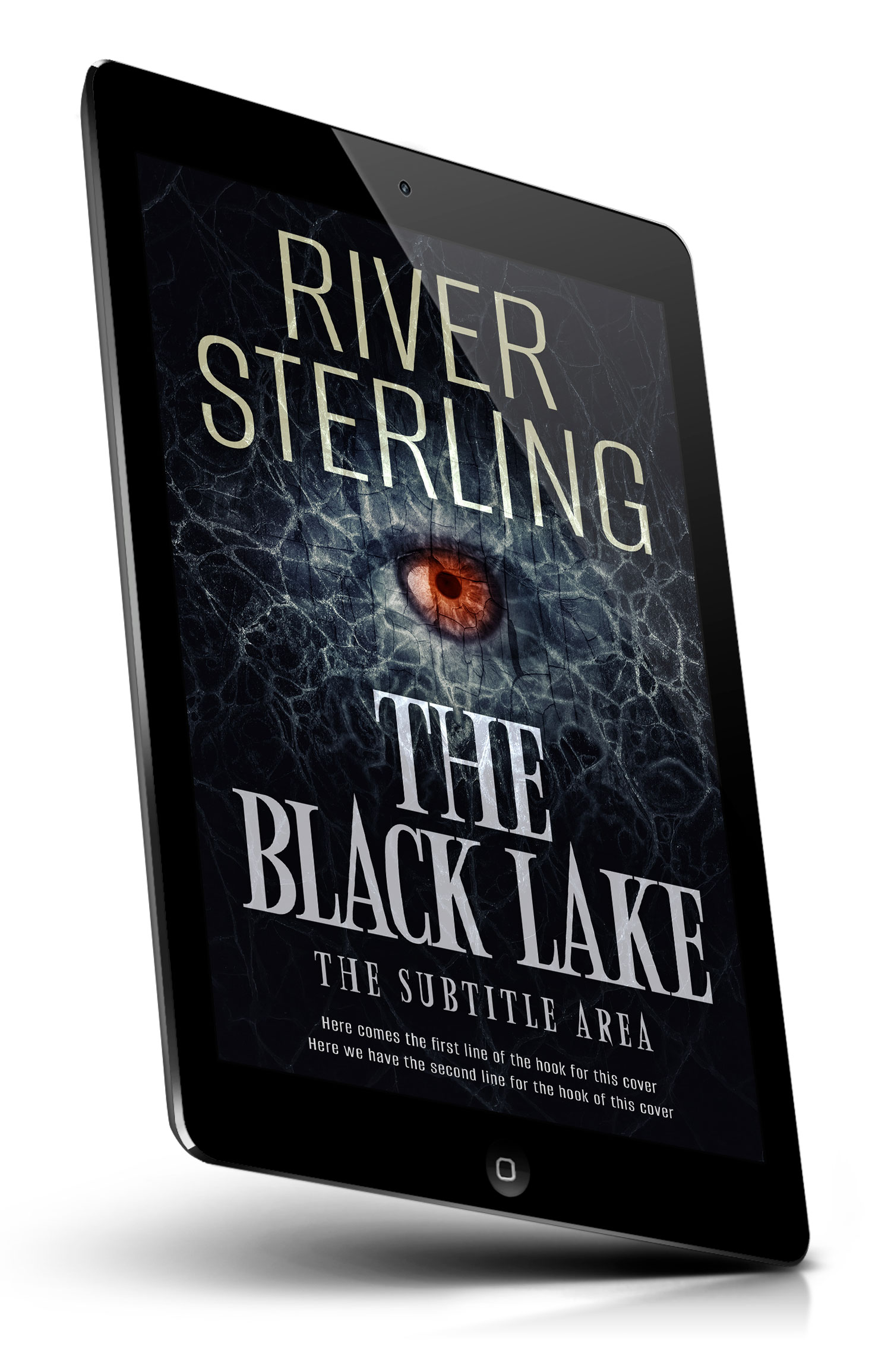 Tags: dark, thriller, horror, mystery, suspense, eerie, ominous, unsettling, cracked texture, fractured surface, icy water, frozen lake, black water, submerged eye, staring eye, hidden menace, psychological thriller, gothic, nightmarish, moody cover