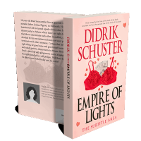 “A book cover with a lacy red bra, cash inside, and scattered red hearts on a pink background.”