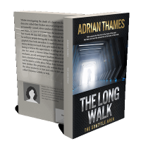 “An illuminated figure walks through a futuristic, metallic corridor with the book title prominently displayed.”