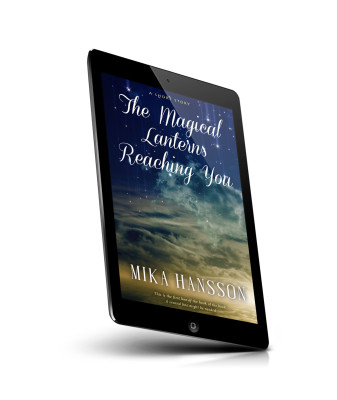 “Starry night sky above clouds, featuring elegant script text for a short story cover.”