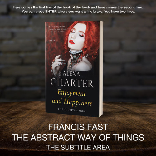 This book cover has 2 lines for the title, 1 line for the subtitle, 2 lines for the author, 3 lines for the hook, and finally 1 line for the genre.