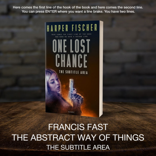 This book cover has 2 lines for the title, 1 line for the subtitle, 1 line for the author, 2 lines for the hook, and finally 1 line for the genre.