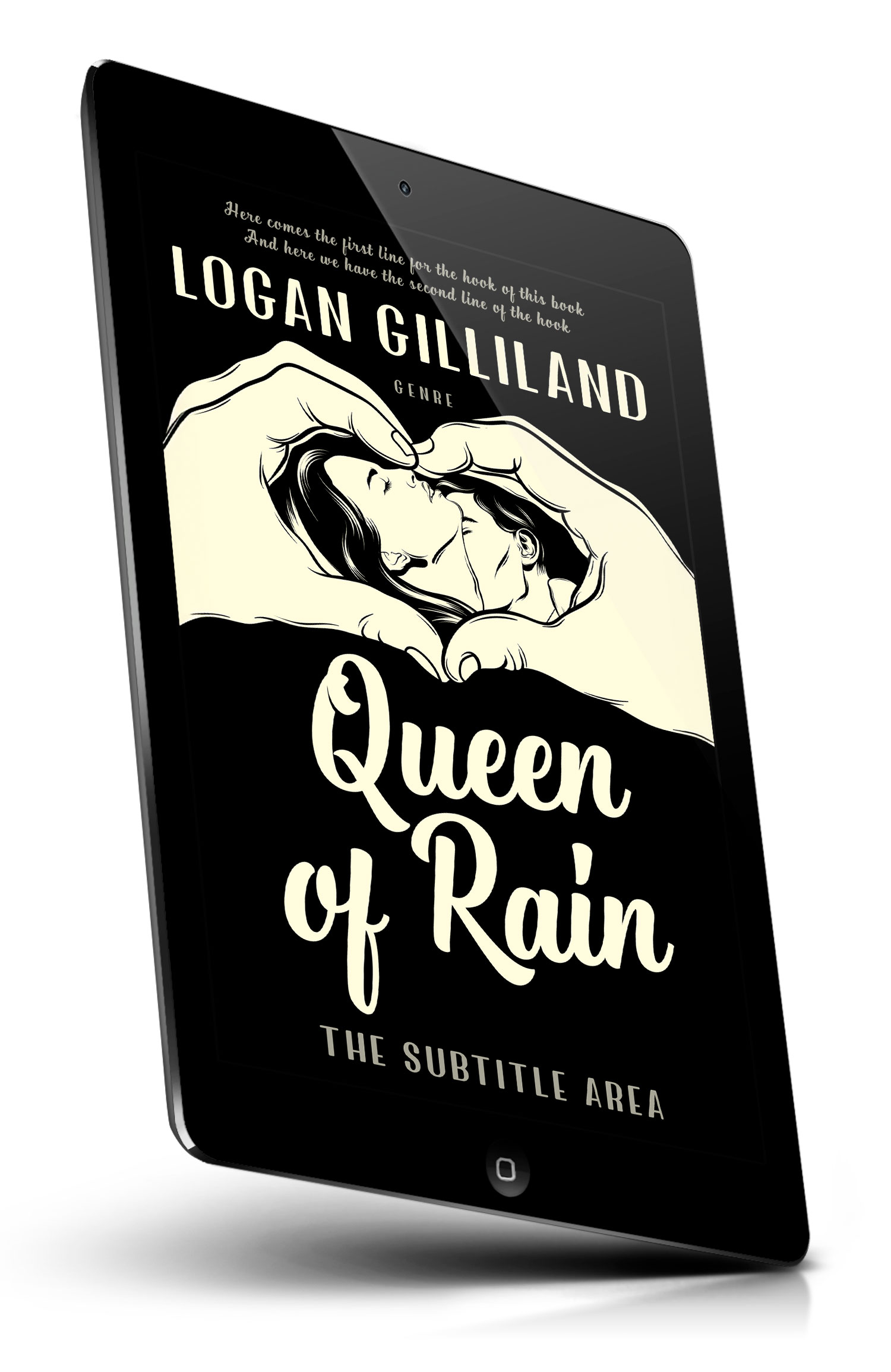 Tags: romance, love, couple, kissing, embrace, heart shape, hands, protection, intimacy, tenderness, silhouettes, monochrome, black and white, minimalist, illustration, line art, dramatic, passion, book cover, vintage style