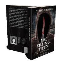 “A hooded figure holds a bloodied knife against a dark, textured background.”