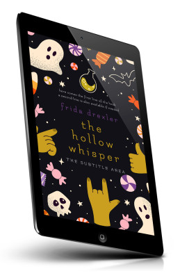“Spooky-themed cover with ghosts, candy, and potions on a black background.”