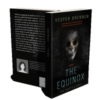“A dark, eerie book cover with a ghostly skull in the background.”