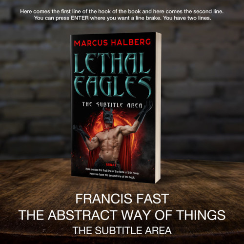 This book cover has 2 lines for the title, 1 line for the subtitle, 1 line for the author, 2 lines for the hook, and finally 1 line for the genre.