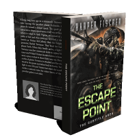 “A soldier in camouflage and tactical gear aims a weapon, with a dynamic fiery background. The title "The Escape Point" stands out prominently.”