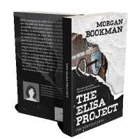 “A torn paper effect reveals a rustic door lock and keyhole, with bold text for a book cover titled "The Elisa Project."”