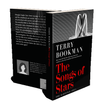 “Black and white photo of legs with bold text overlaying, "The Songs of Stars," in red, with an overall minimalistic design.”