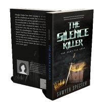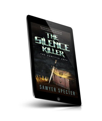 “A sword piercing through a treasure chest near a crown, with the title "The Silence Killer" in metallic font above.”
