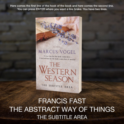 This book cover has 3 lines for the title, 1 line for the subtitle, 1 line for the author, 2 lines for the hook, and finally 1 line for the genre.