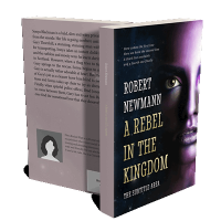 “A striking face with dramatic lighting dominates the cover next to bold text on a dark, cosmic background.”