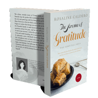 “A book cover featuring the title "The Aroma of Gratitude" with an image of pastries on a black plate.”