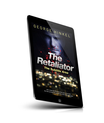 “A dark, intense book cover featuring a man's face and city lights below, with splatters of red.”