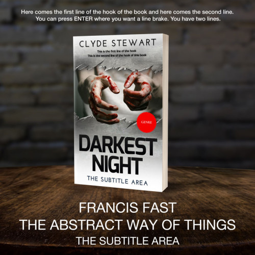 This book cover has 2 lines for the title, 1 line for the subtitle, 1 line for the author, 2 lines for the hook, and finally 1 line for the genre.
