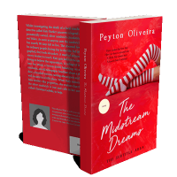 “Red background with a person wearing red and white striped stockings lying down. Large text in white cursive and smaller text in other styles.”
