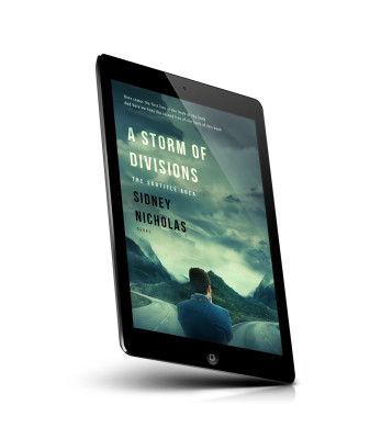 “A person stands facing a mountainous landscape under a stormy sky with text about a book cover overlaid on the scene.”