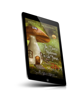 “A whimsical scene with a large mushroom house in a forest, featuring a wooden door and windows. Surrounded by smaller mushrooms and soft light.”