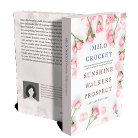 “A white background with pink roses framing a book cover design.”