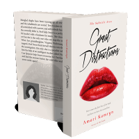 “Bright red lips below stylish cursive title, minimalist design with soft beige background.”