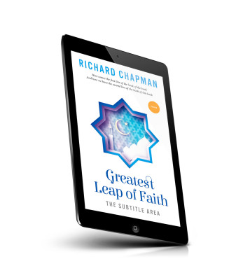 “Book cover with blue Islamic design, featuring a crescent moon, mosque silhouettes, and decorative patterns.”