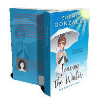 “An illustrated woman with glasses and a scarf holds an umbrella under a bright, sunny sky.”