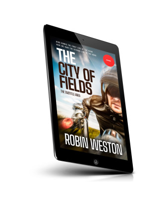 “A person wearing a helmet and leather jacket rides a motorcycle at high speed.”