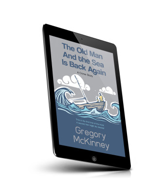 “An illustration of a man in a boat on a stormy sea under a cloudy sky.”