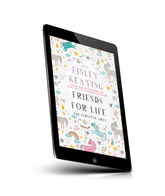 “A colorful, whimsical book cover featuring unicorns, hearts, stars, and flowers.”