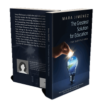 “A hand reaches out to touch a glowing light bulb containing an image of a field and solar panels. The background is dark.”
