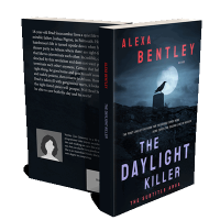 “A crow perched on a rock with a full moon in the background, under a dark, cloudy sky. Book title reads "The Daylight Killer."”