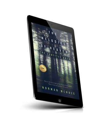 “Blurred forest backdrop with book title and author's name in bold white text. Golden genre label on the lower left.”