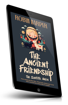 “A girl with animals in a whimsical, cartoon style forest, accompanied by a large title and subtitle area below.”