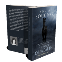 “A black horse stands against a cloudy, moody sky on a book cover.”