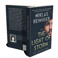 “A close-up of a bearded man's face in a hat, with the book title "The Light of Storm" and author "Niklas Reininger" in large text.”