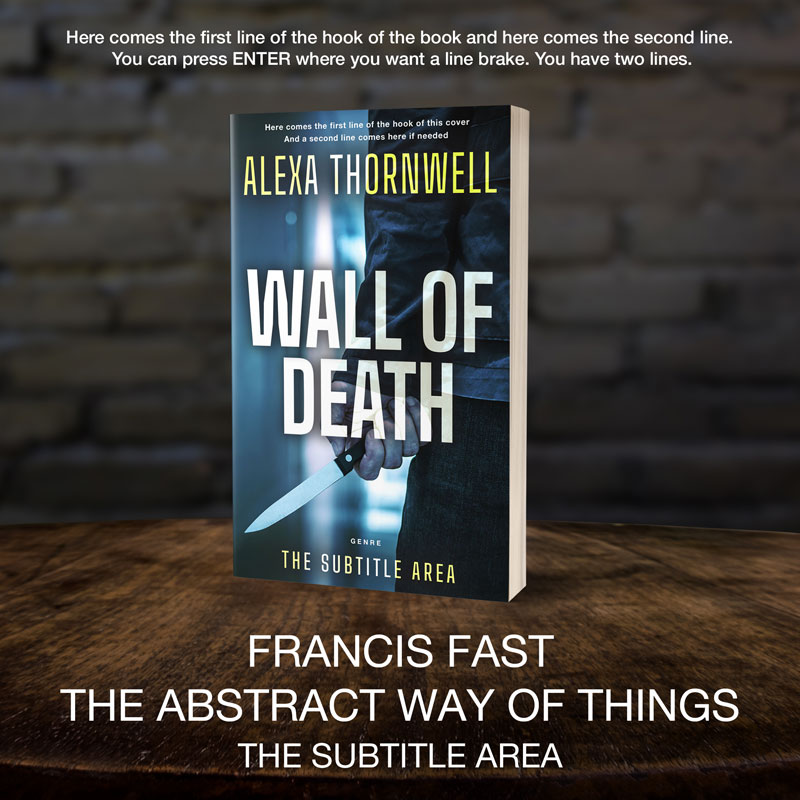 This book cover has 2 lines for the title, 1 line for the subtitle, 1 line for the author, 2 lines for the hook, and finally 1 line for the genre.