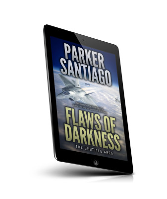 “Two fighter jets flying above the clouds with a dramatic, dark-toned sky.”