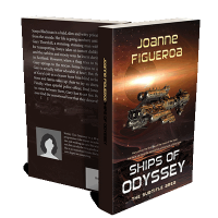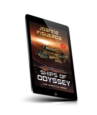 “A spaceship travels through a cosmic scene with planets and stars in the background.”