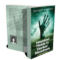 “A ghostly hand emerges from grassy fields beneath an ominous sky, suggesting a supernatural tale.”