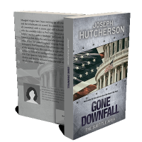 “Book cover with an American flag, a building with columns, and a polished metal texture with rivets.”