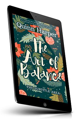 “Floral and fruit-themed book cover with bold, cursive title "The Art of Balance" by Quinn Harper.”