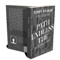 “Black and white cover showing a cityscape with numerous buildings. The title "The Endless Path" dominates the center in large text.”